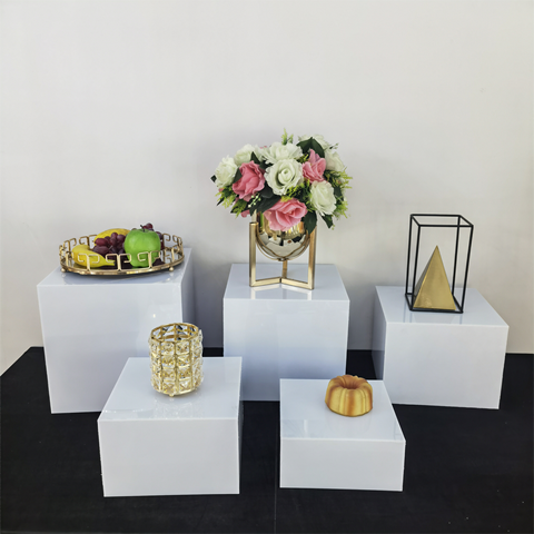 Buffet de acrílico blanco multifunción, cajas de 5 lados, soporte de Catering, elevadores de exhibición de alimentos, cubos, centros de mesa de boda, decoraciones de mesa