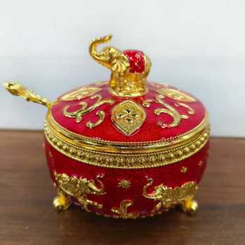 European Retro Metal Jewelry Box Exquisite Bohemian Style Square Enamel Seasoning Box Candy Jar for Party Buffet Decorations